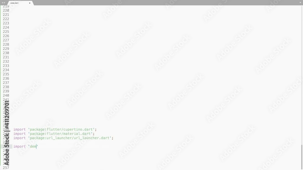 Wall mural : Dart programming language source code typing effect - dart programmer ticker colored commands editor