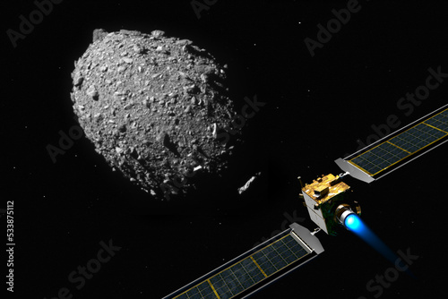 Wall mural dart satellite on collision course to impacting the asteroid dimorphos to deflect its orbit. this im - Wall murals Wall mural dart satellite on collision course to impacting the asteroid dimorphos to deflect its orbit. this im - Wall murals