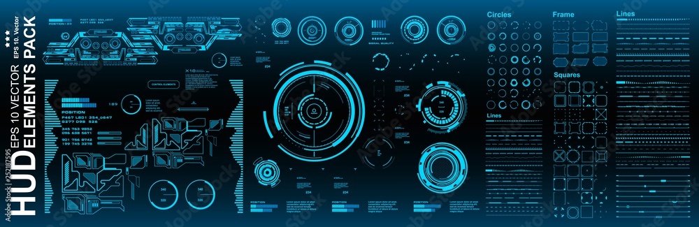 Wall mural dashboard blue display virtual reality technology screen. hud futuristic user interface, target. hud - Wall murals Wall mural dashboard blue display virtual reality technology screen. hud futuristic user interface, target. hud - Wall murals