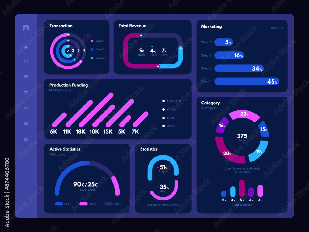 Wall mural dashboard dark theme. web site dashboard admin panel with dark graphs charts diagrams and statistics - Wall murals Wall mural dashboard dark theme. web site dashboard admin panel with dark graphs charts diagrams and statistics - Wall murals
