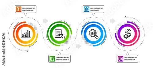 Wall mural data analysis, document and graph chart line icons set. infographic timeline. cashback sign. magnify