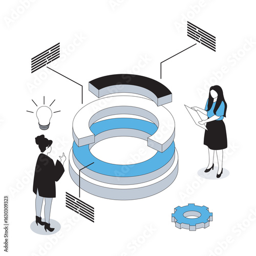 Data analysis 3d isometric concept with isometry people design for web - team calculating datum, workWall mural