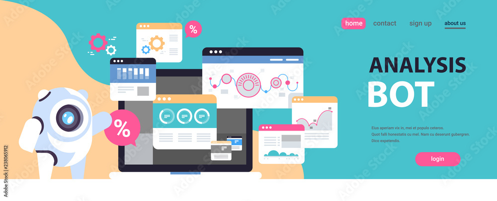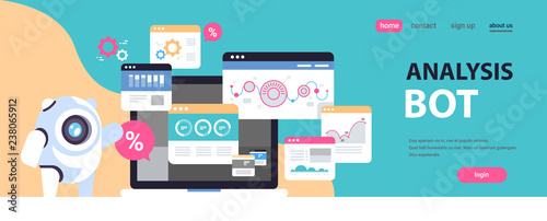 Wall mural data analysis bot robot graph diagram finance artificial intelligence concept over blue background f