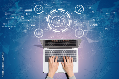 Wall mural data analysis concept with person using a laptop computer - Wall murals Wall mural data analysis concept with person using a laptop computer - Wall murals