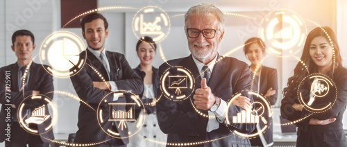 Wall mural : Data analysis for business and finance concept - graphic interface showing future computer technology