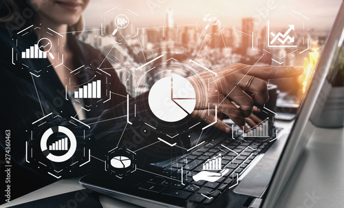 Wall mural : Data analysis for business and finance concept - graphic interface showing future computer technology