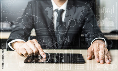 Wall mural data analysis for business and finance concept. graphic interface showing future computer technology