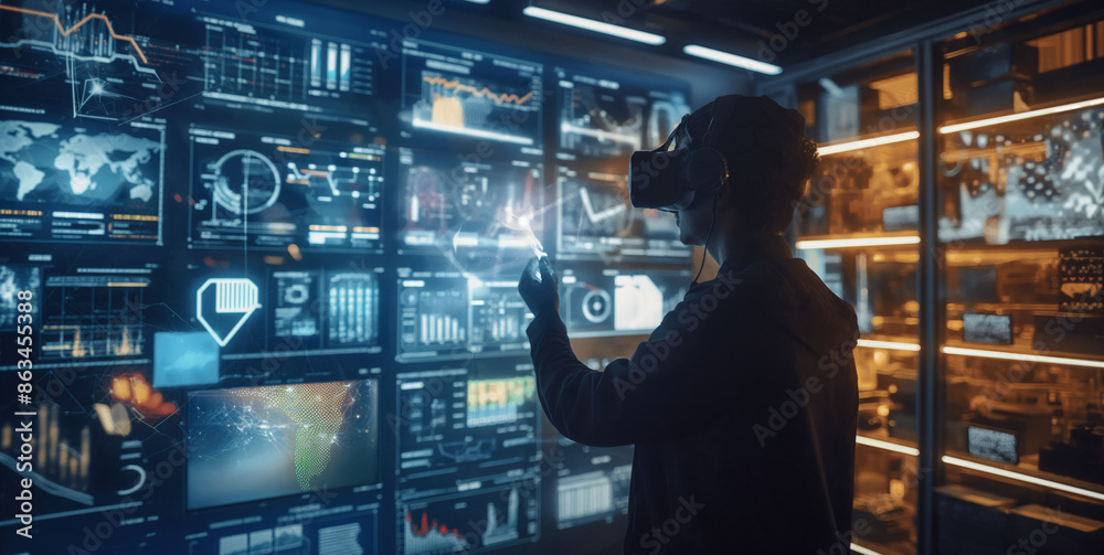 Wall mural data analyst using augmented reality technology for data monitoring, digital business data virtual d - Wall murals Wall mural data analyst using augmented reality technology for data monitoring, digital business data virtual d - Wall murals