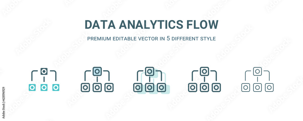 Wall mural data analytics flow icon in 5 different style. outline, filled, two color, thin data analytics flow