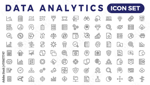 Wall mural : Data analytics web icons set in thin line design - pack of database, big data process, ai, monitoring
