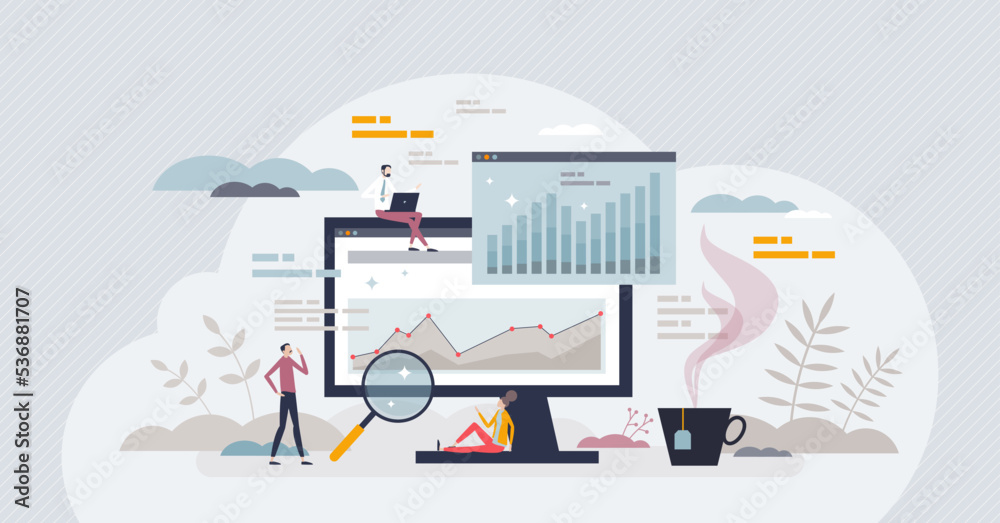 Wall mural : Data analytics with business information chart monitoring tiny person concept - infographic with stat