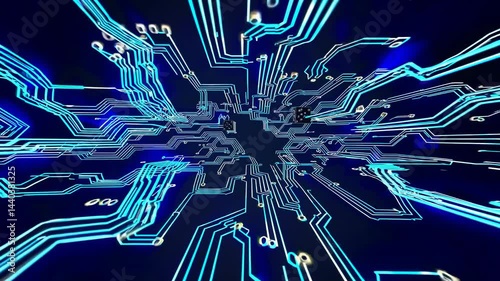 The watermark will not be included on Wall mural.: Data blocks are traveling through a futuristic circuit board network, creating a powerful visualizat