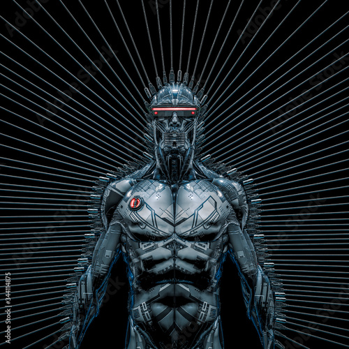 Wall mural : Data connection achieved / 3d illustration of science fiction artificial intelligence robot wearing