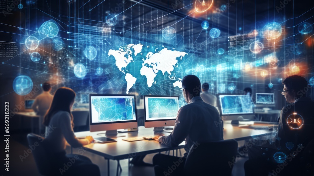 Wall mural data exchange, digital technology background, software development, cloud computing. business intell - Wall murals Wall mural data exchange, digital technology background, software development, cloud computing. business intell - Wall murals