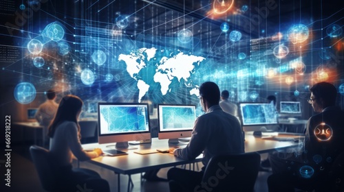 Wall mural data exchange, digital technology background, software development, cloud computing. business intell