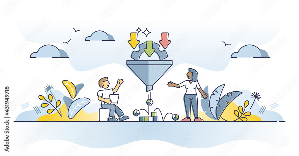 Wall mural data filter funnel for information sorting and optimization outline concept. quality info flow resul - Wall murals Wall mural data filter funnel for information sorting and optimization outline concept. quality info flow resul - Wall murals