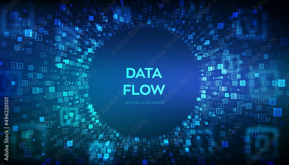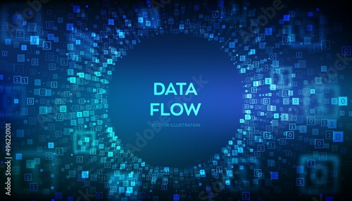 Wall mural data flow. binary data flow tunnel. virtual tunnel warp. coding, programming or hacking concept. abs