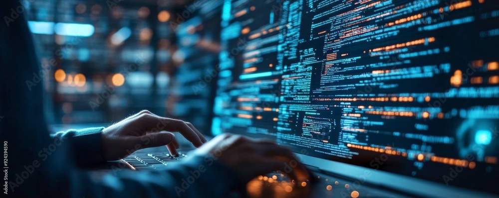 Wall mural : Data management system, digital technology, software development concept - computer programmer, softw