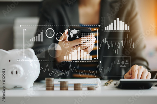 Wall mural : Data management system with business analytics concept - business team hands working with provide inf