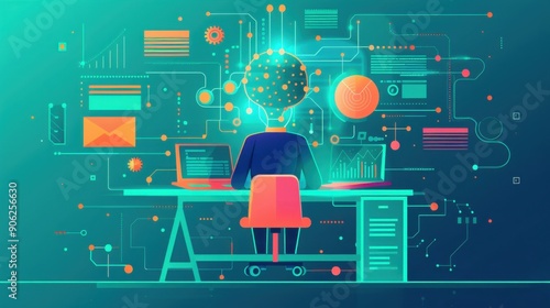 Wall mural data science, machine learning algorithms, flat design illustration