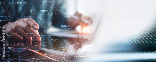 Wall mural : Data science and engineering, digital technology, futuristic tech background - software engineer work