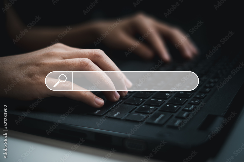 The watermark will not be included on Wall mural.: Data search technology seo search engine optimization or job search concept - hands using typing on l