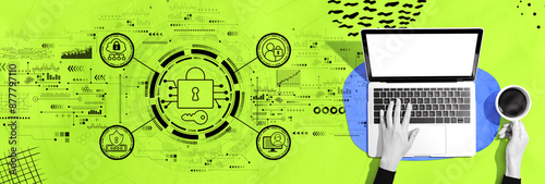 Wall mural data security concept with person using a laptop computer - Wall murals Wall mural data security concept with person using a laptop computer - Wall murals
