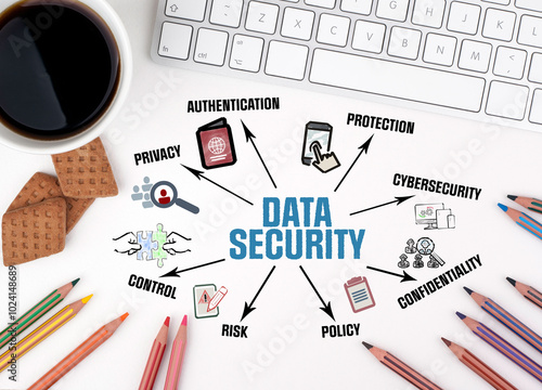 Wall mural data security concept. chart with keywords and icons. white office desk - Wall murals Wall mural data security concept. chart with keywords and icons. white office desk - Wall murals
