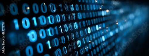 Wall mural : Data stream digital binary code numbers pattern in blue, technology usage