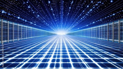 Wall mural : Data streams converging in digital server room, futuristic background, tech concept