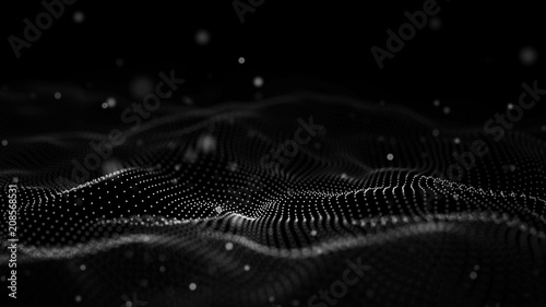 Wall mural data technology illustration. abstract futuristic background. wave with connecting dots and lines on