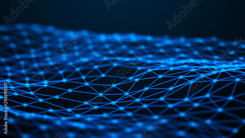 Wall mural : Data technology illustration - big data digital code - abstract connection of dots and lines on dark b