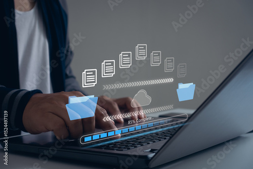 The watermark will not be included on Wall mural.: Data transfer file document folder cloud backup archive system for business and ai technology digita