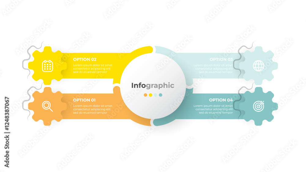 Wall mural data visualization concept. creative infographic design with 4 step or options in a gears. ideal for