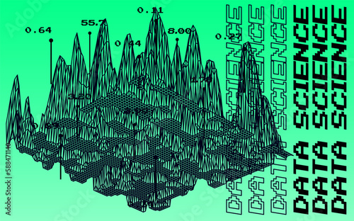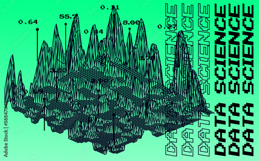 The watermark will not be included on Wall mural.: Data visualization in a three-dimensional abstract geometric graph - machine learning and ai subject