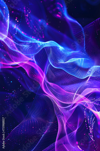 The watermark will not be included on Wall mural.: Data waves - modern vertical neon abstract backdrop - virtual ciberspace -