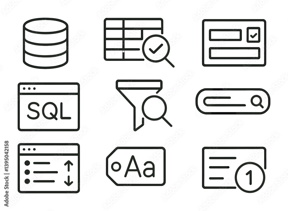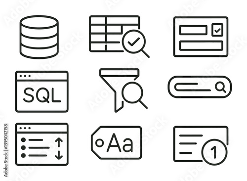 Wall mural database and sql management linear icons set for web and app design - Wall murals Wall mural database and sql management linear icons set for web and app design - Wall murals