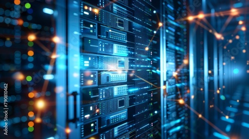 Wall mural database table with server storage and network in datacenter background - Wall murals Wall mural database table with server storage and network in datacenter background - Wall murals