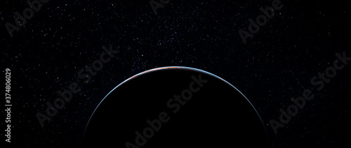 Wall mural dawn on the blue planet earth in space. sunset panorama, eclipse. elements of this image are furnish