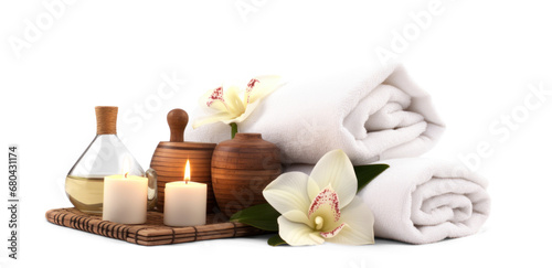 Wall mural day spa set, png file of isolated cutout object with shadow on transparent background.