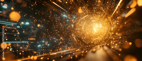 Wall mural : Dazzling stage with golden rays and sparks creating an energetic and captivating atmosphere for a ba