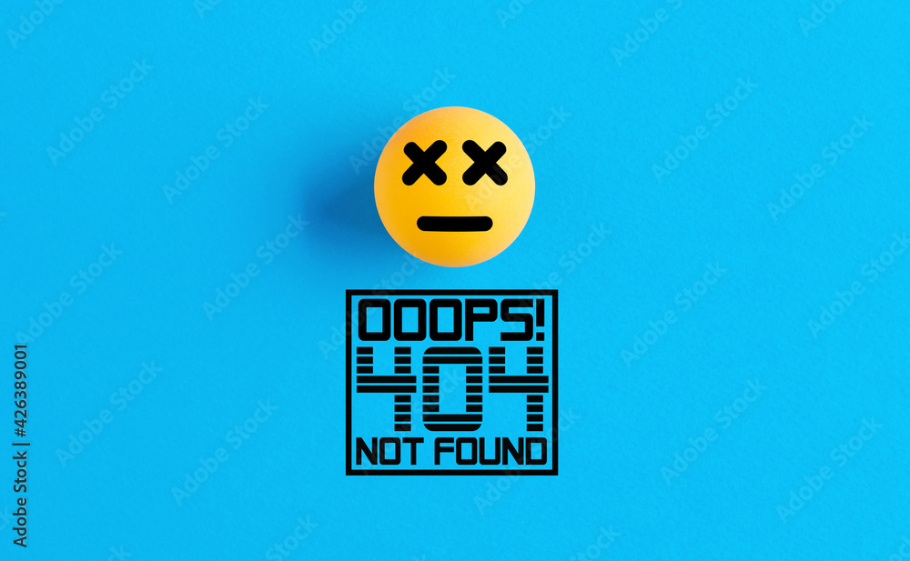 Wall mural : Dead face emoticon or icon on a ball with the error message 404 not found -