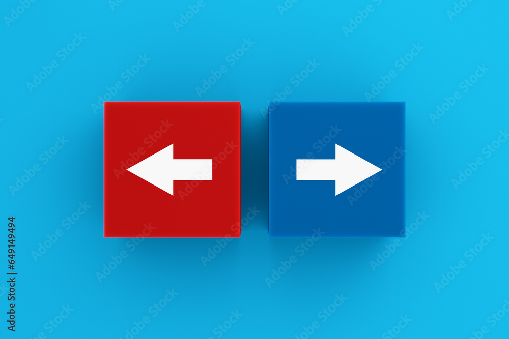 Wall mural decision making and alternative choices concept. arrows pointing opposite directions on colorful blo - Wall murals Wall mural decision making and alternative choices concept. arrows pointing opposite directions on colorful blo - Wall murals