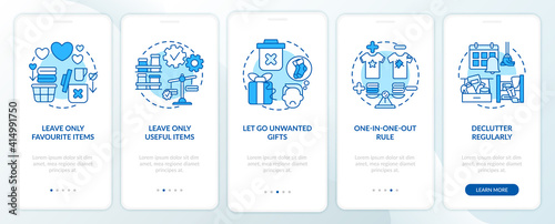 Wall mural : Decluttering tips oonboarding mobile app page screen with concepts - home cleaning-out and declutteri