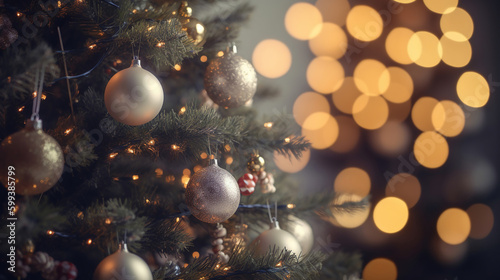 Decorated christmas tree with bokeh background - generative aiWall mural
