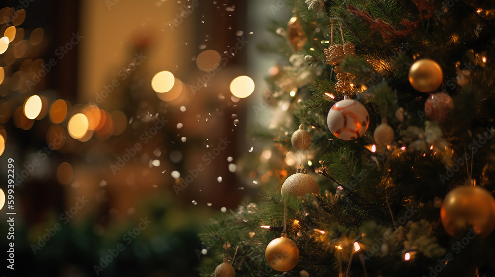 Wall mural : Decorated christmas tree with bokeh background - generative ai