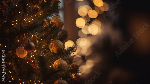 Decorated christmas tree with bokeh background - generative aiWall mural