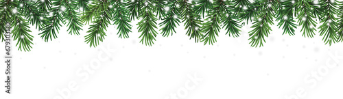 Wall mural : Decorative christmas seamless pattern with coniferous branches and falling snow on transparent backg