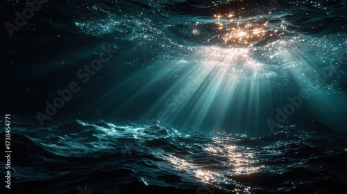 The watermark will not be included on Wall mural.: Deep blue water abstract background with rays of light