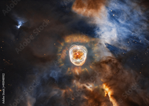 The watermark will not be included on Wall mural.: Deep space look - the eskimo nebula in bright colours near far galaxies and stars - science fiction - f